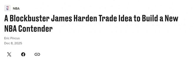 记者:若哈登可交易,二月截止日前多支球队将会考虑引进